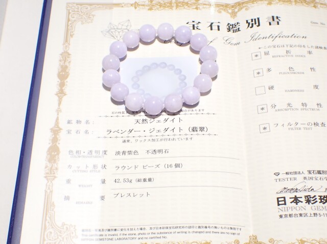HC0482 【プレミアム】 ミャンマー産 ラベンダー翡翠 11.5mm ブレスレット ☆宝石鑑別書付き☆