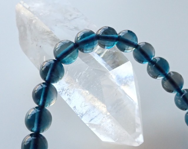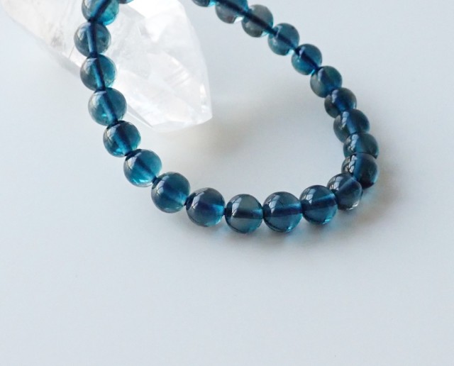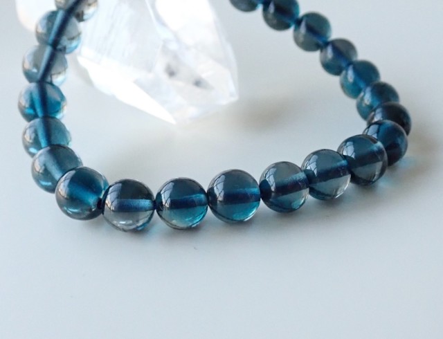 深いブルーが何ともいえず美しいロンドンブルートパーズです。この品質でラウンドビーズの1連になっているものは滅多に出回らないので、お探しだった方におすすめです。