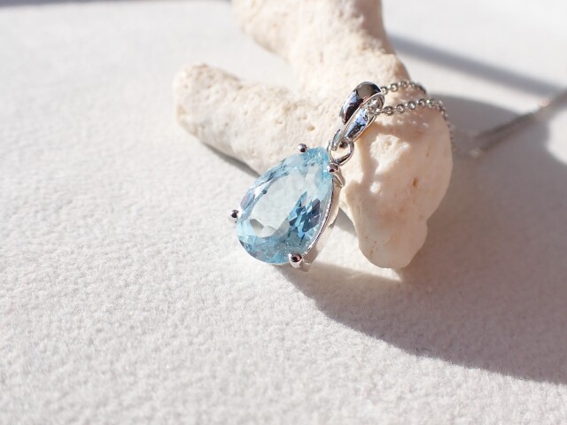 HE0191 ブルートパーズ/ペアシェイプ ペンダントトップ(シルバー) ◇ネコポス対応可◇