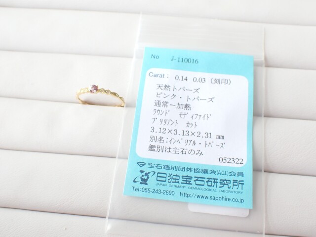 ピンクインペリアルトパーズ:3.12mm×3.13mm×2.31mm 重量:0.14ct