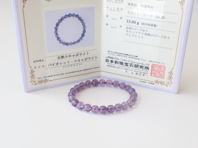 産地:アフガニスタン マリアライト ブレスレット 宝石鑑別書付き