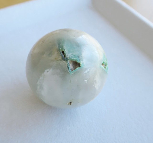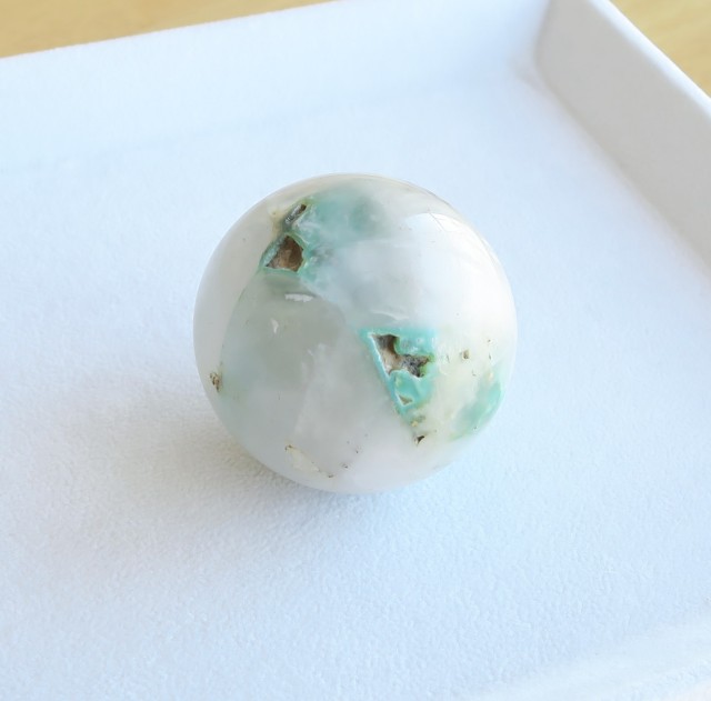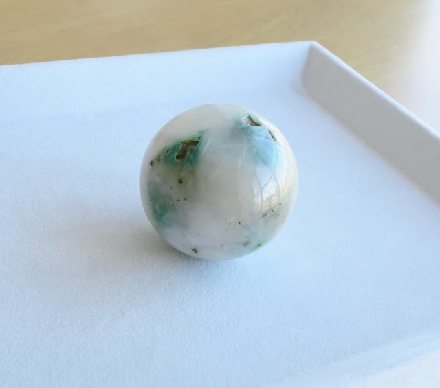 アホアイトインクォーツは、南アフリカのメッシーナ鉱山からしか産出されていなかったのですが、現在 この鉱山はすでに閉山しており世界でも産出していないため現存している原石しか ありません。そのため価格が異常なくらいに高騰しております。こちらは原石自体のお値段もかなり高くなっている中、丸玉に加工した大変貴重なお品になります。