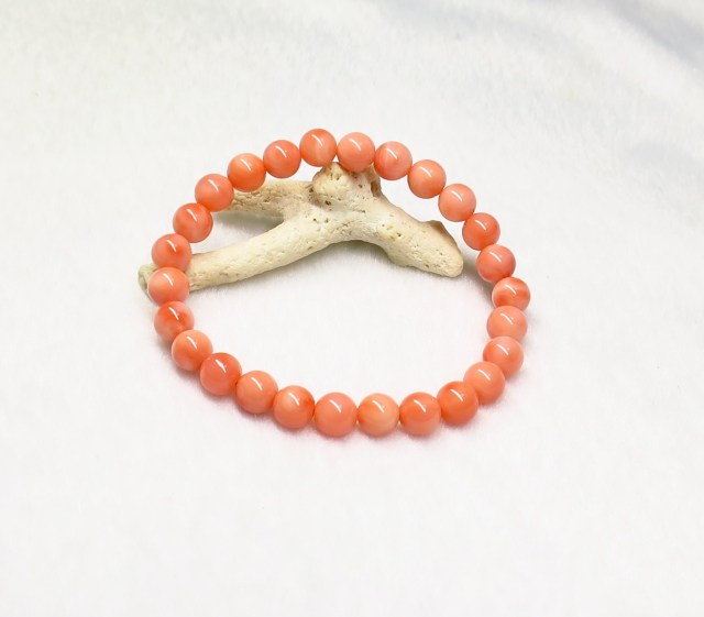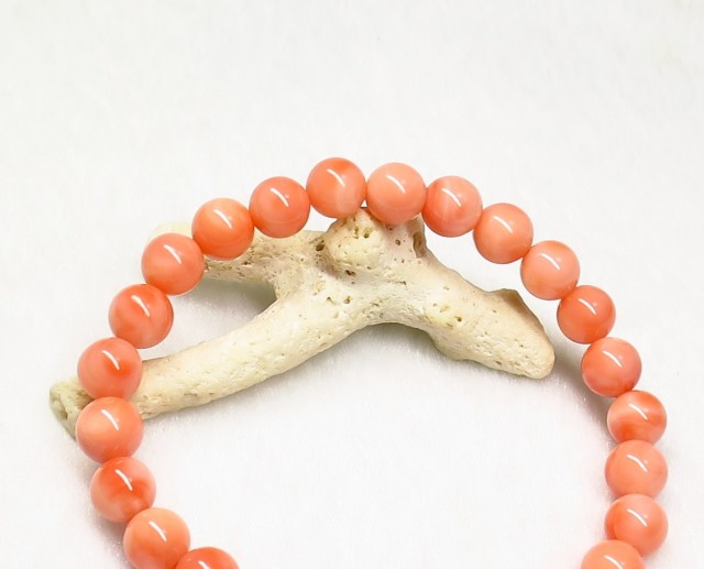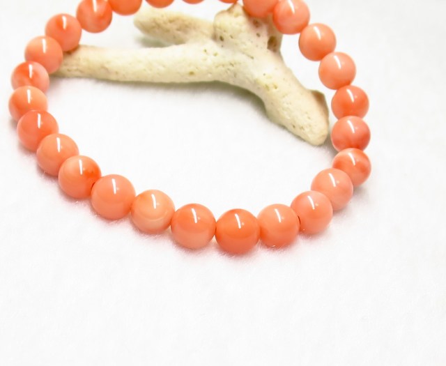 KE00221 【美品】 稀少 天然珊瑚(深海さんご)SA 7mm ブレスレット ☆宝石鑑別書付き☆