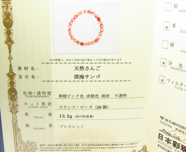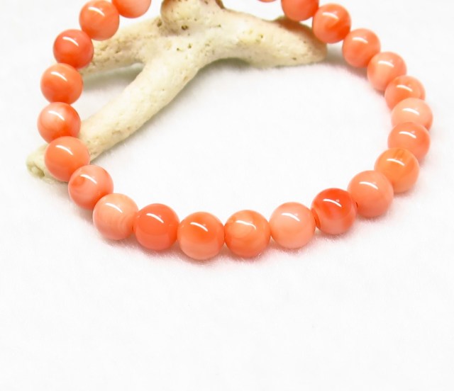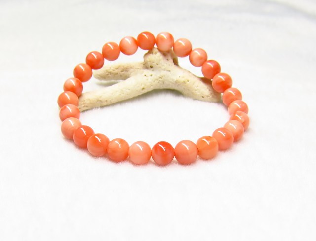 KE00241 【美品】 稀少 天然珊瑚(深海さんご)SA 7mm ブレスレット ☆宝石鑑別書付き☆