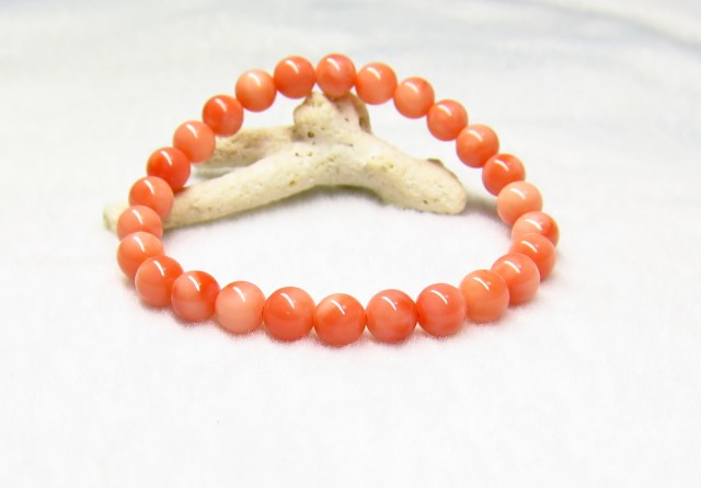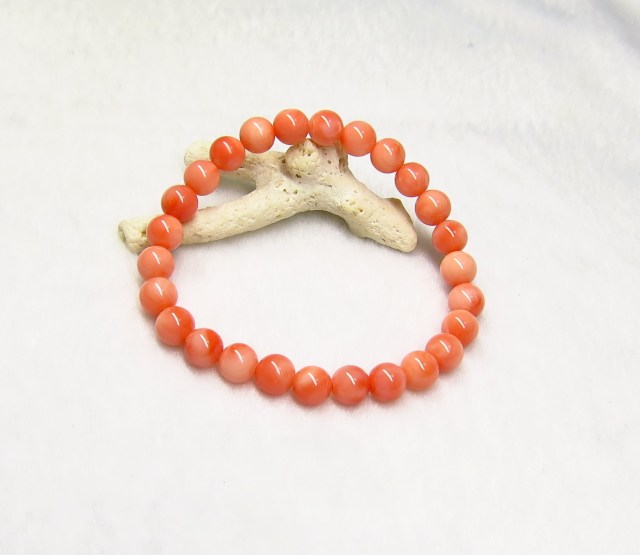 KE00251 【美品】 稀少 天然珊瑚(深海さんご)SA 7mm ブレスレット ☆宝石鑑別書付き☆