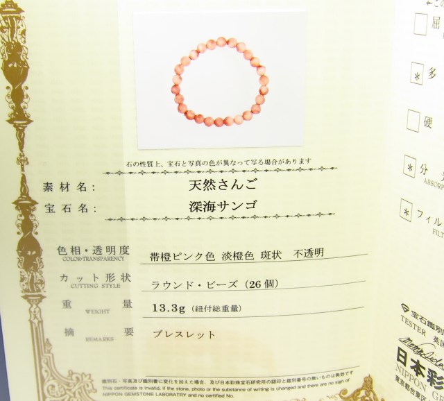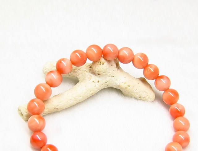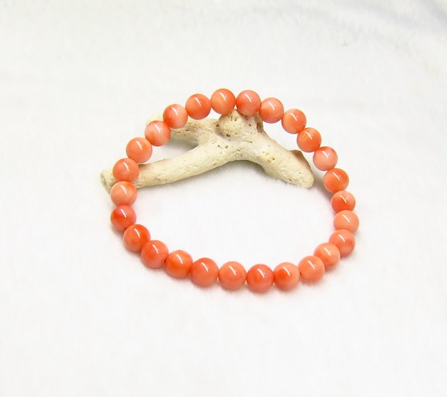 KE00271 【美品】 稀少 天然珊瑚(深海さんご)SA 7mm ブレスレット ☆宝石鑑別書付き☆