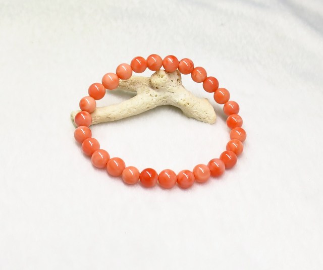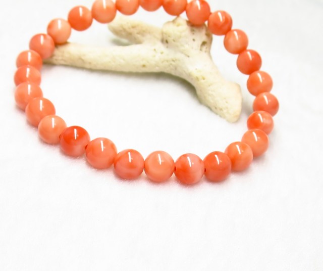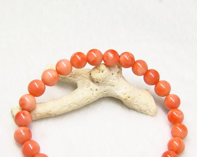 KE00281 【美品】 稀少 天然珊瑚(深海さんご)SA 7mm ブレスレット ☆宝石鑑別書付き☆