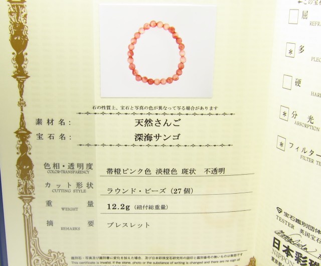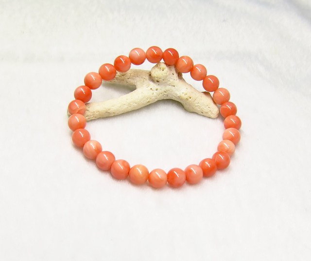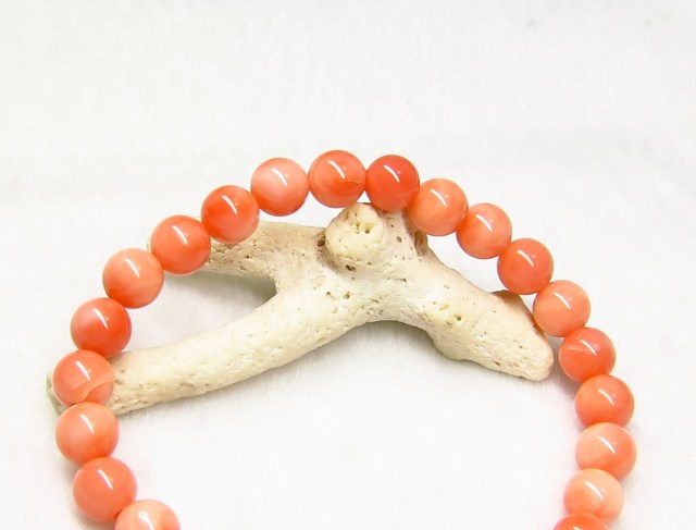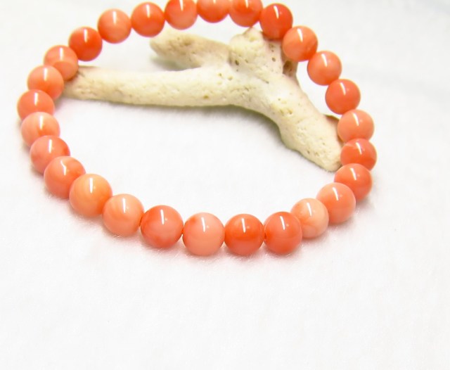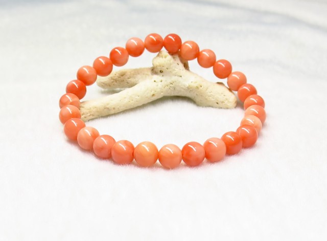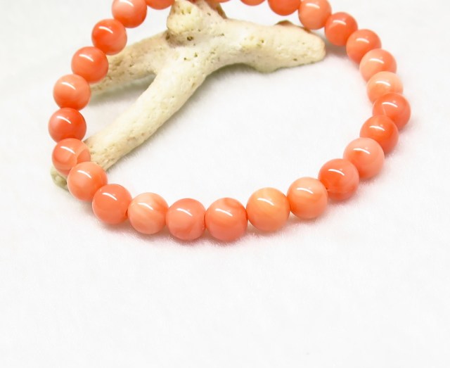 KE00291 【美品】 稀少 天然珊瑚(深海さんご)SA 7mm ブレスレット ☆宝石鑑別書付き☆