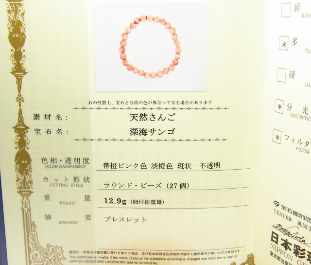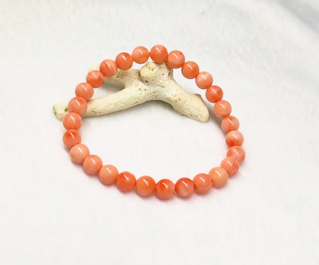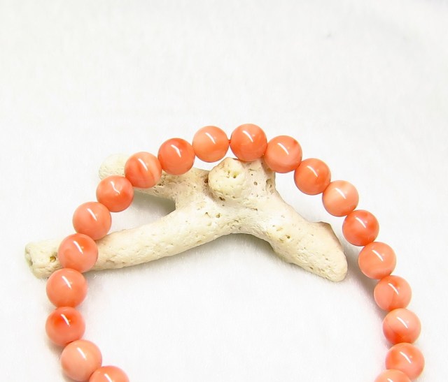 KE00301 【美品】 稀少 天然珊瑚(深海さんご)SA 7mm ブレスレット ☆宝石鑑別書付き☆