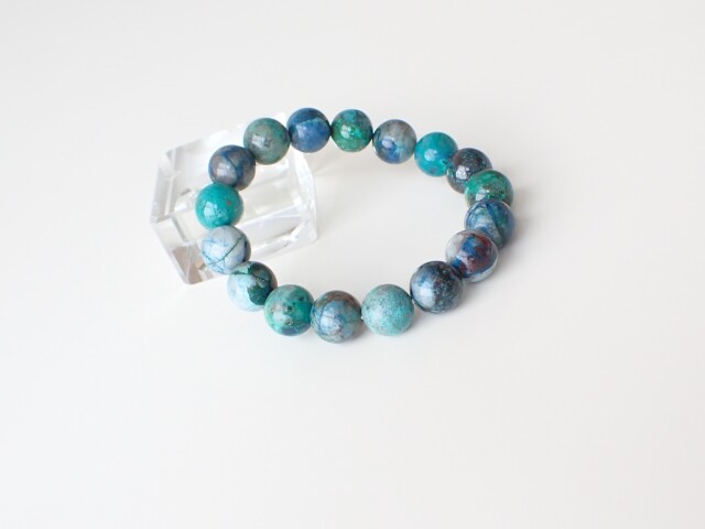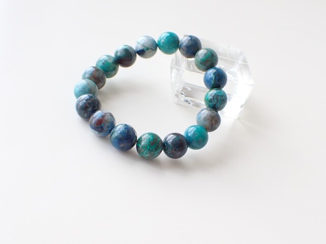 産地:ナミビア クォンタムクワトロシリカ 約12mm×17粒 腕回り:約16.5cm