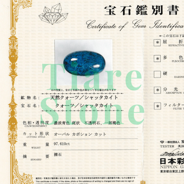 尚、宝石鑑別書は2024年5月21日付で当店が取得したものになります。