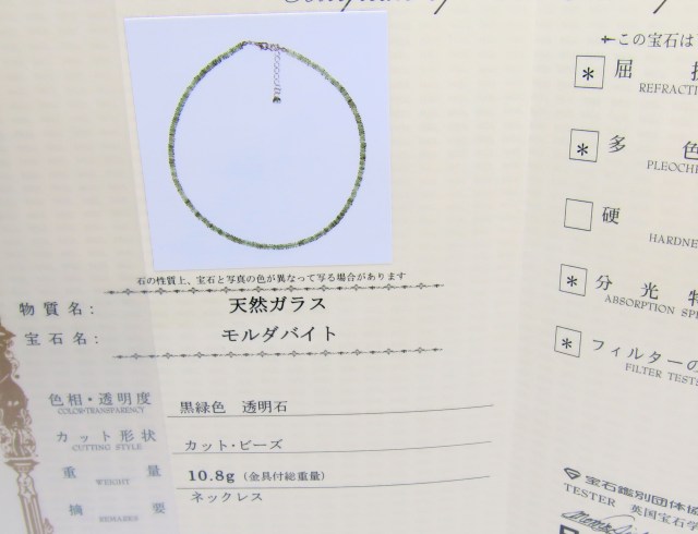 MA0123 【プレミアム】 モルダバイト ボタンカット ネックレス(アジャスター付) ☆宝石鑑別書付き☆ ☆各種セール・ポイント付与対象外☆