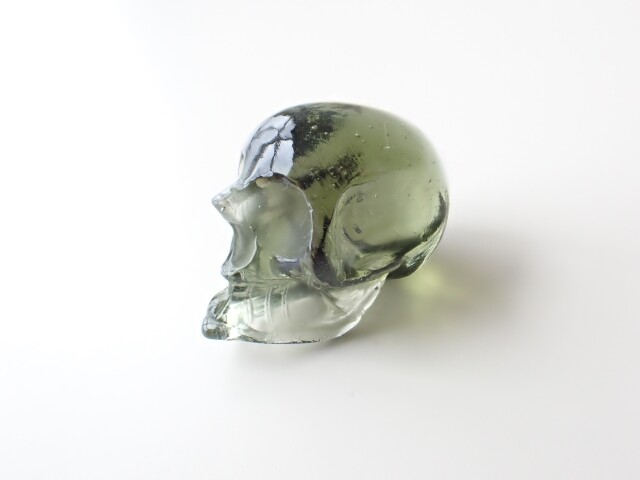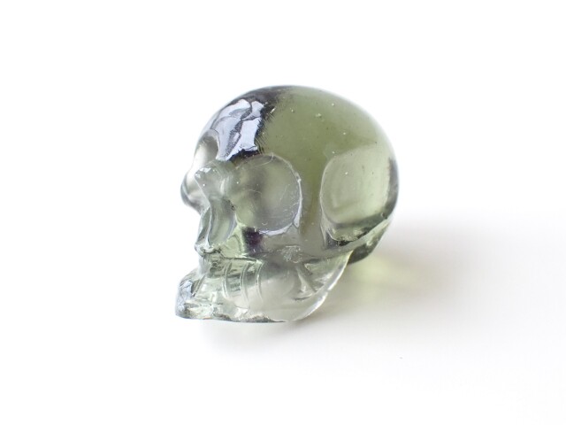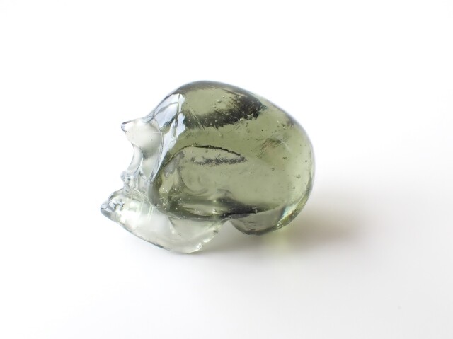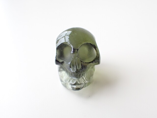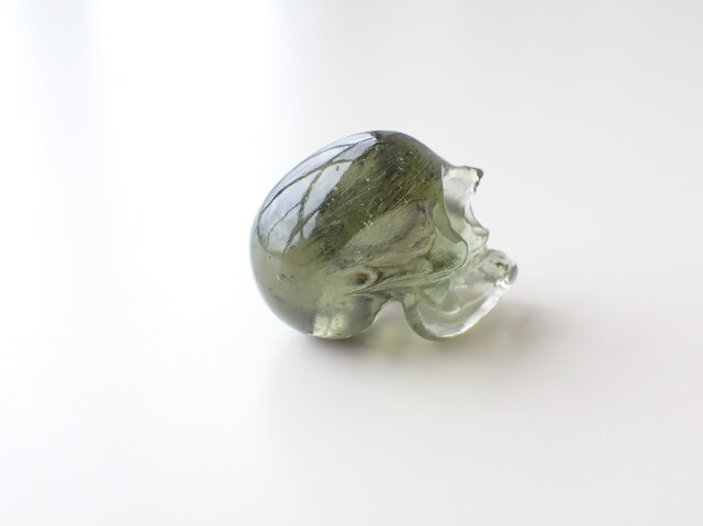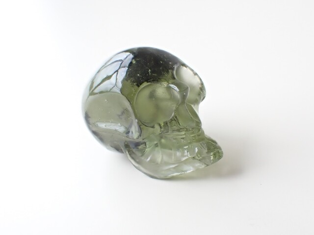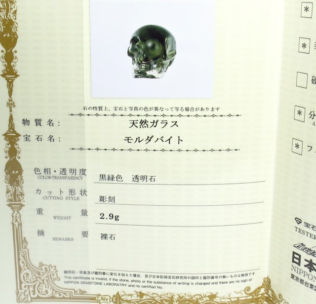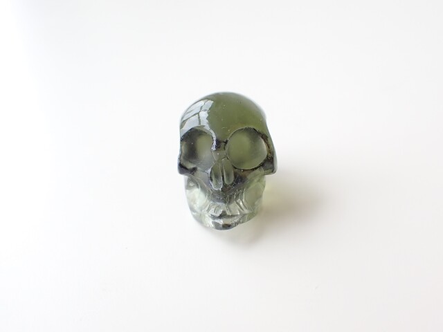 MA0195 【プレミアム】 モルダバイト スカル 彫刻(カービング) ☆宝石鑑別書付き☆