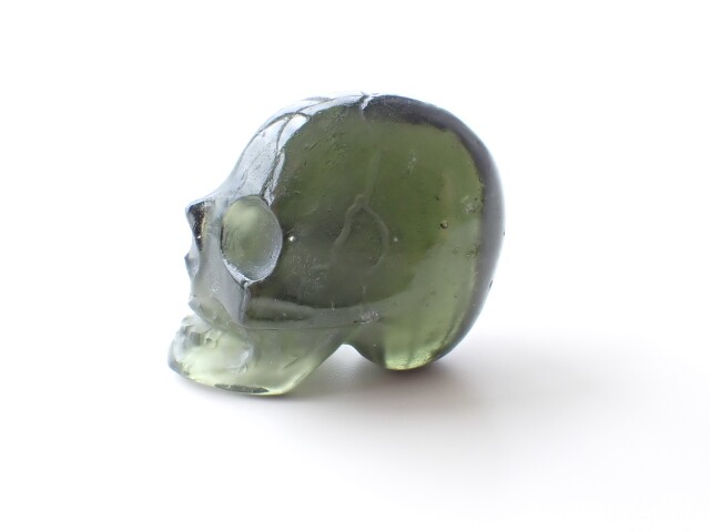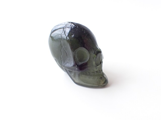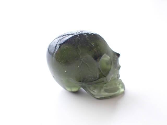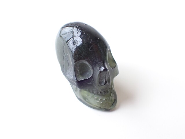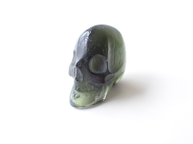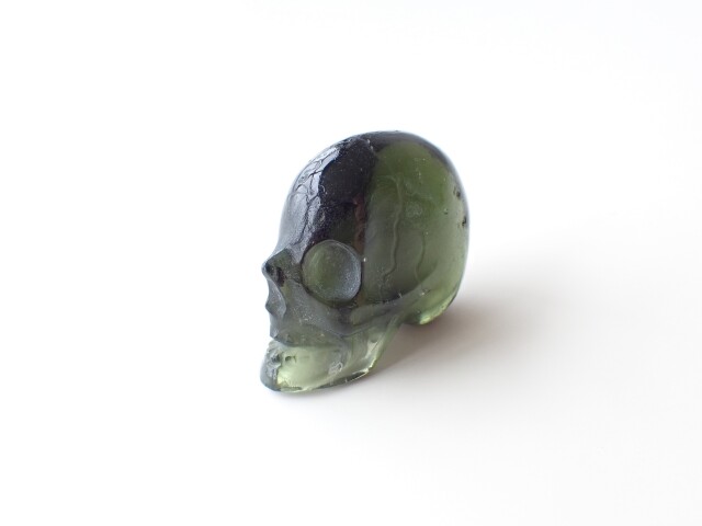 MA0196 【プレミアム】 モルダバイト スカル 彫刻(カービング) ☆宝石鑑別書付き☆
