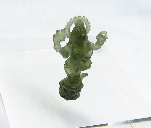 産地:チェコ H&E社製 モルダバイト ガネーシャ 彫刻(カービング) ディレクトリーカード付き