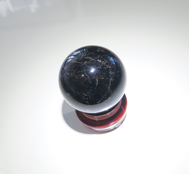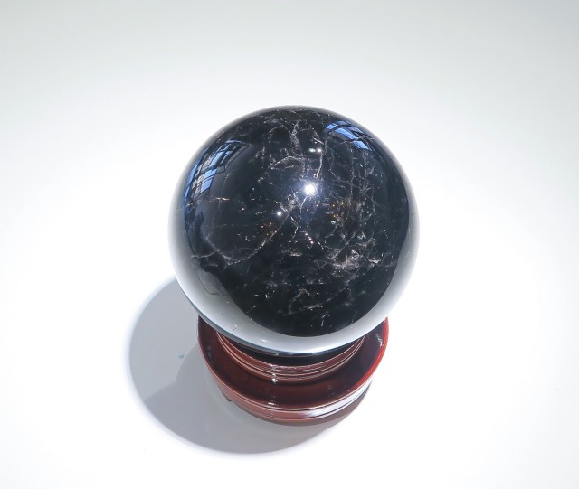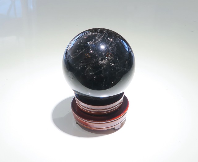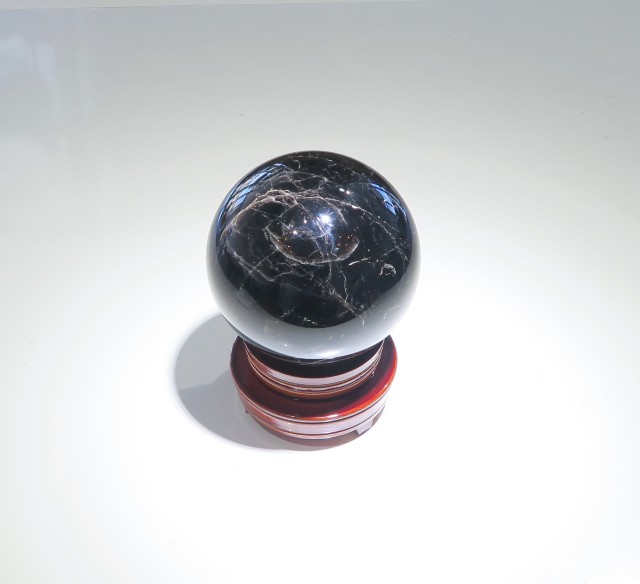 産地:中国 山東省産 モリオン(黒水晶) スフィア(丸玉) 台座付き