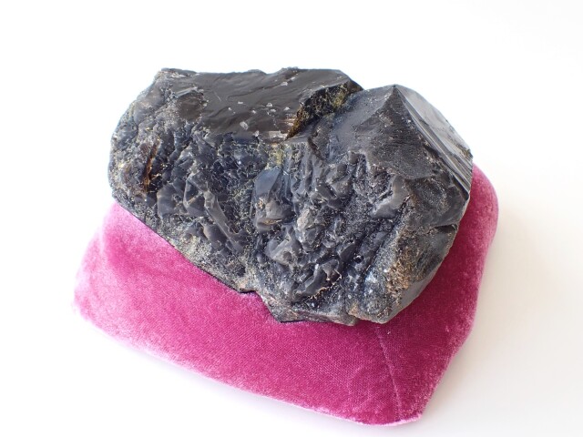 モリオン(黒水晶) 原石(ノンポリッシュ) 台座クッション付き