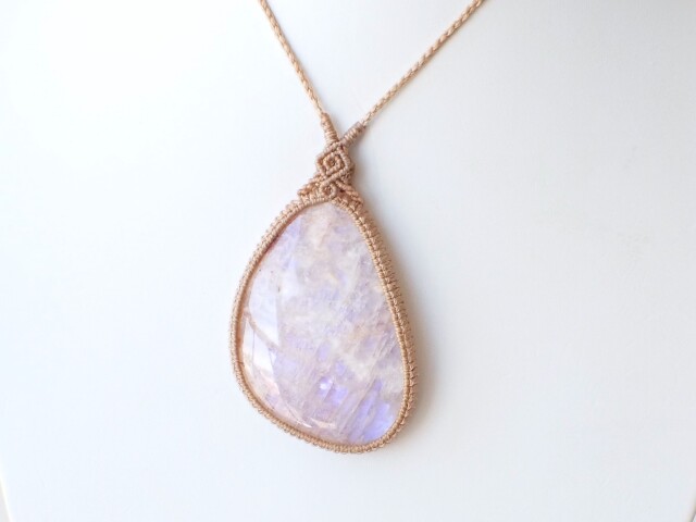 MC0267 ムーンストーン ペンダントネックレス(マクラメ編み)