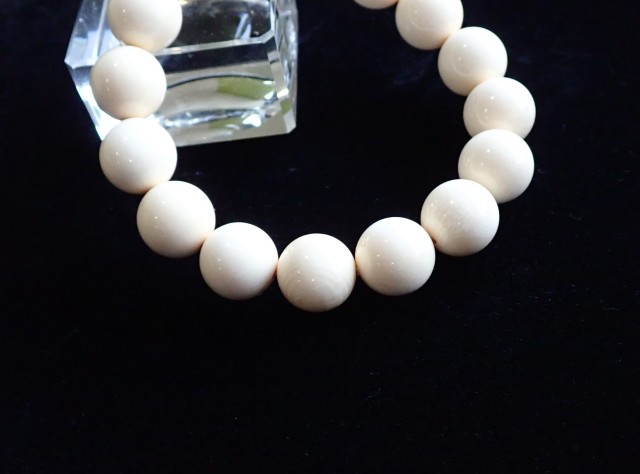 産地:ロシア シベリア マンモス 牙(マンモス・アイボリー) 約12.5mm~13mm×16粒 腕回り:約16.5cm