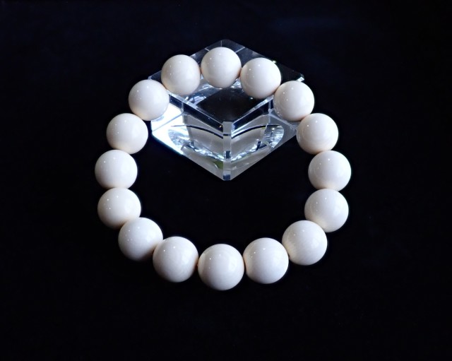 産地:ロシア シベリア マンモス 牙(マンモス・アイボリー) 約12.8mm~13mm×16粒 腕回り:約16.5cm