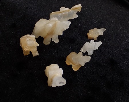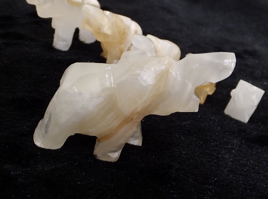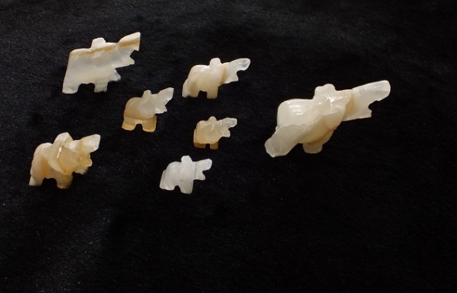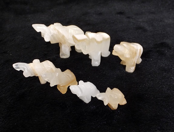 OA0005 【珍品】 メキシコ産 ナチュラルホワイトオニキス 象ファミリー カービング(彫刻)