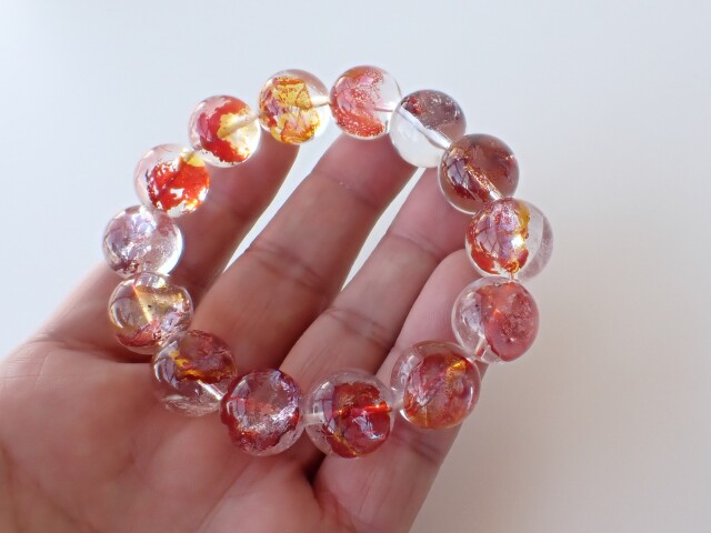 産地:ブラジル オーロラクォーツ(ヘマタイト/ライモナイトインクォーツ) ブレスレット