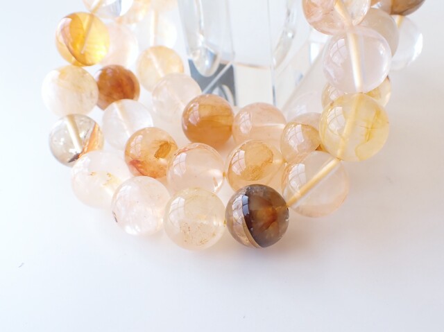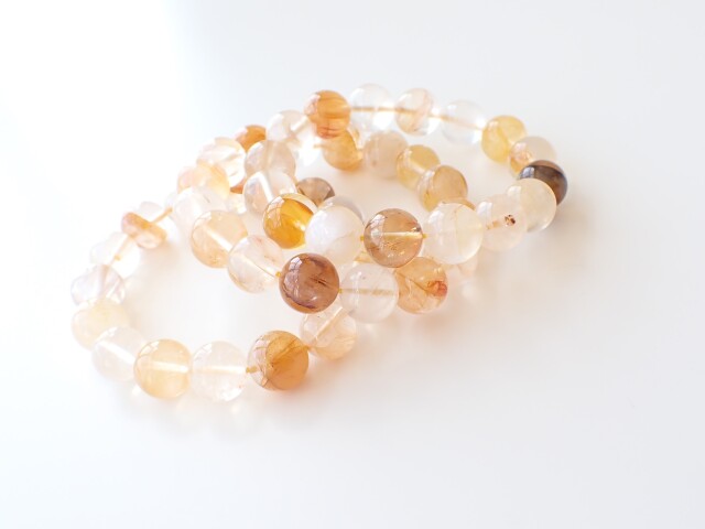 OC0045 ライモナイトインクォーツ(イエロークォーツ) 12mm~13mm ブレスレット ◇ネコポス対応可◇
