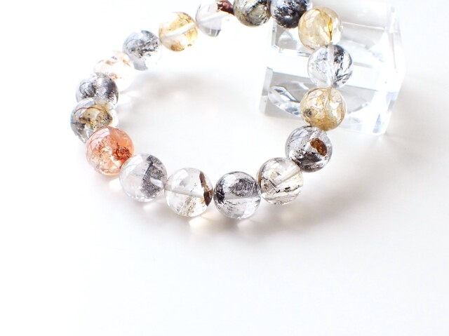 透明度や内包物、内包色などからエレスチャル系の原石からビーズに