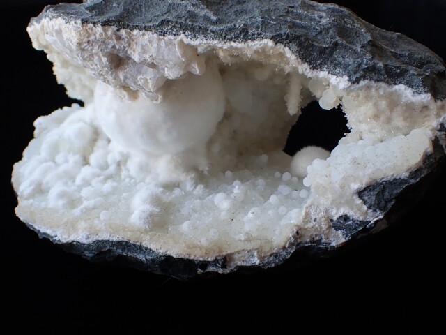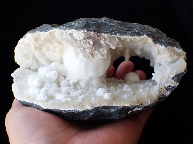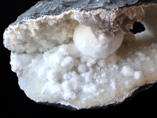 玄武岩などの火山岩の晶洞中に産出され、ゼオライト(沸石)
