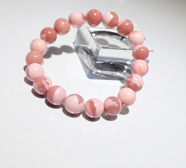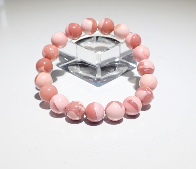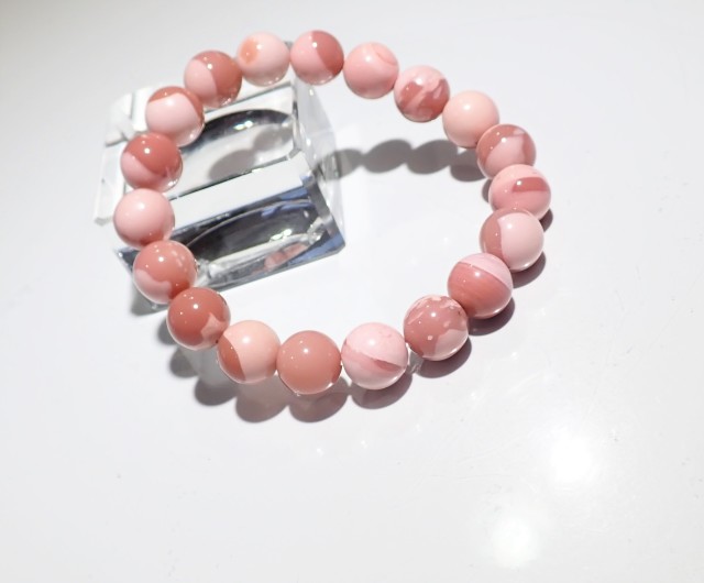 産地:オーストラリア ピンクオパライズド・タフ 約10mm~11mm×19粒 腕回り:約16.5cm