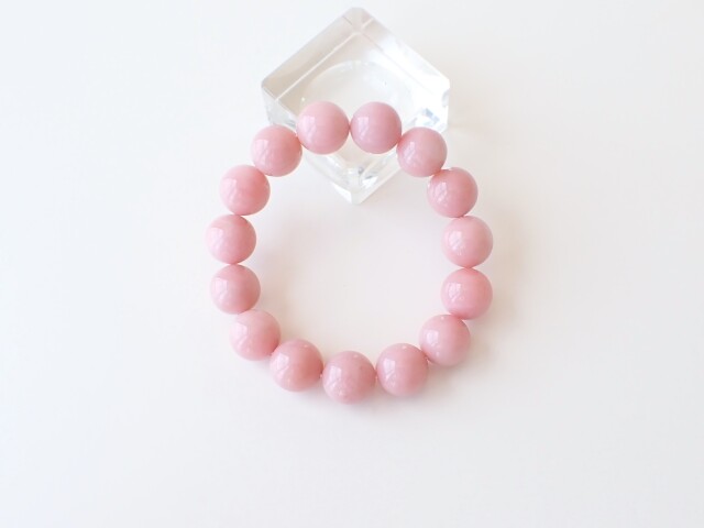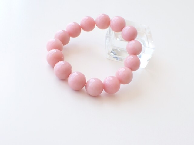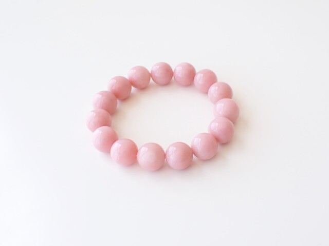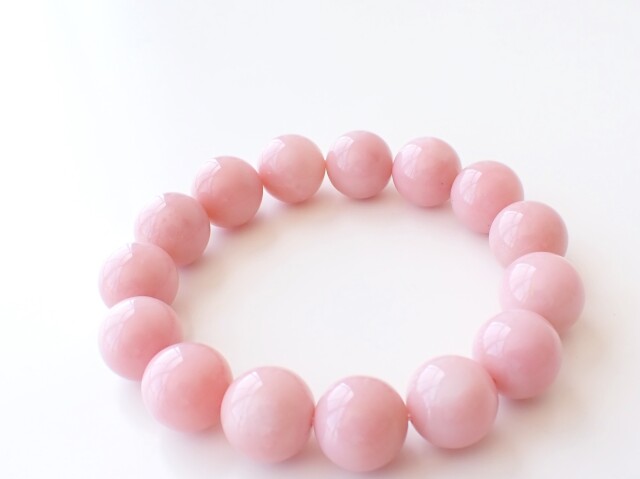 産地:ペルー産 ピンクオパール 約14mm×15粒 腕回り:約16.5cm