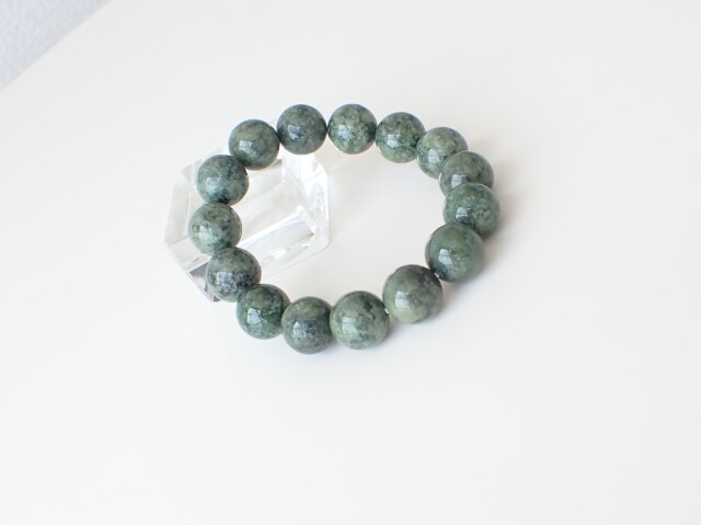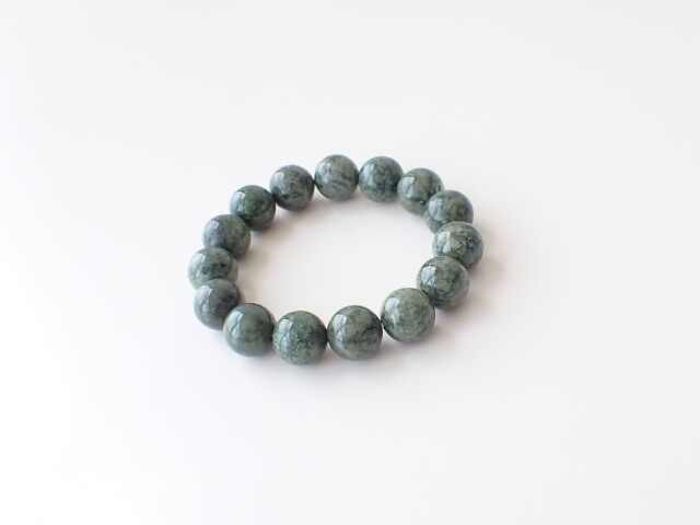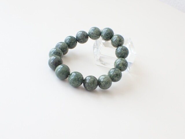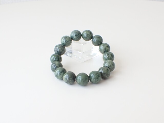 産地:アメリカ パイロクシナイト(輝岩) 約14mm×15粒 腕回り:約16cm