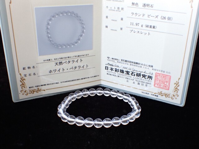 産地:ブラジル産 ペタライト ブレスレット 宝石鑑別書付き