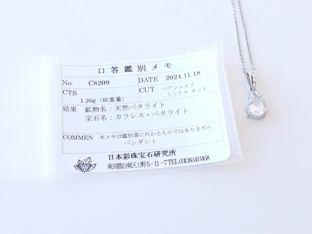 産地:ブラジル産 ペタライト ペンダントトップ(シルバー) ソーティング付き