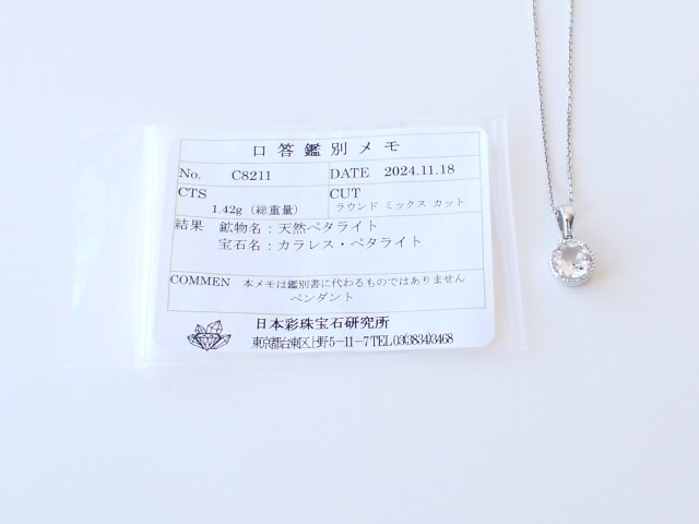 産地:ブラジル産 ペタライト ペンダントトップ(シルバー) ソーティング付き
