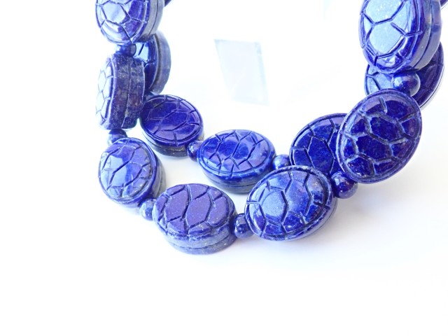 産地:アフガニスタン ラピスラズリ 亀ビーズ ブレスレット