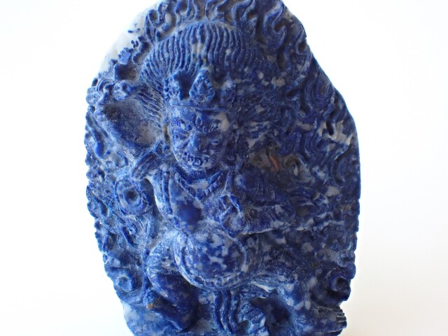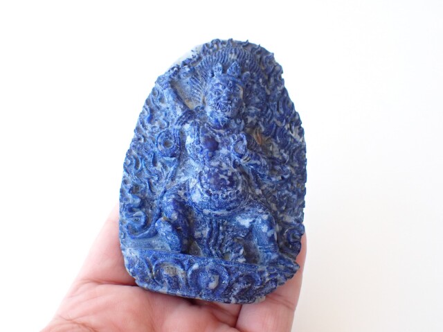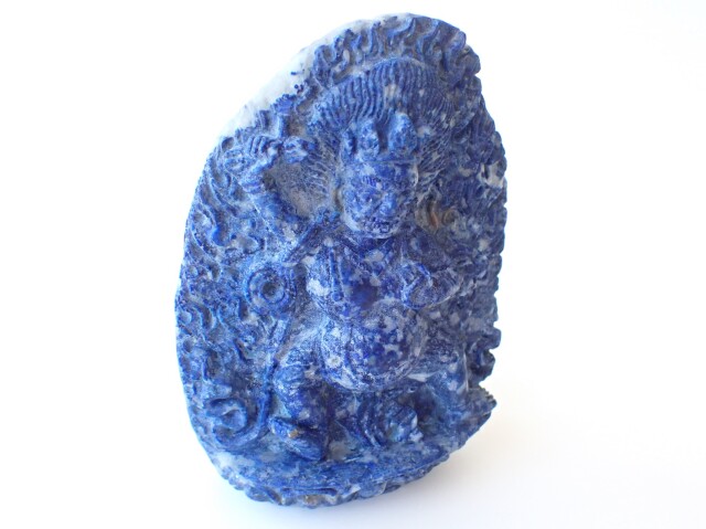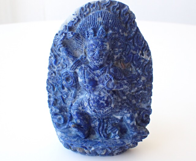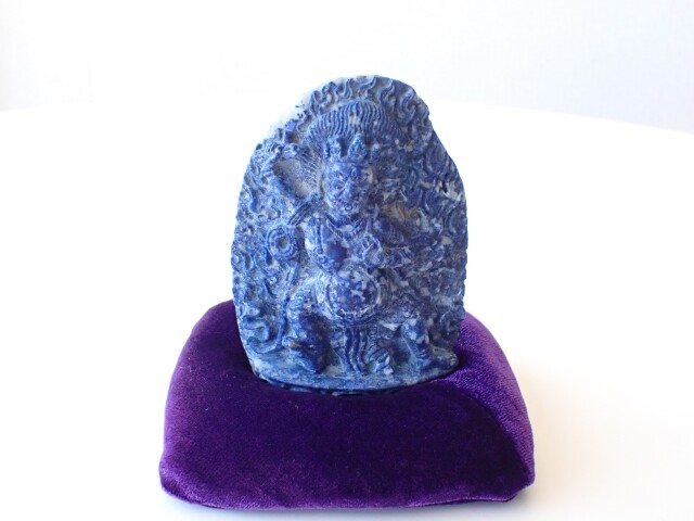 産地:アフガニスタン ラピスラズリ ヴァジュラパーニ(金剛手菩薩)像 台座クッション付き