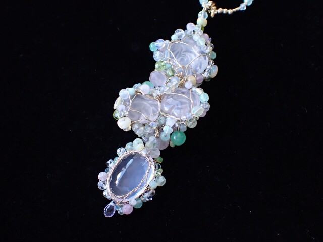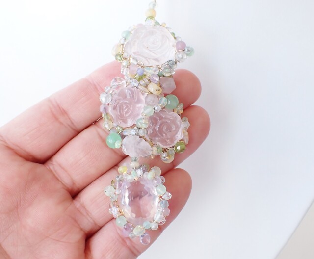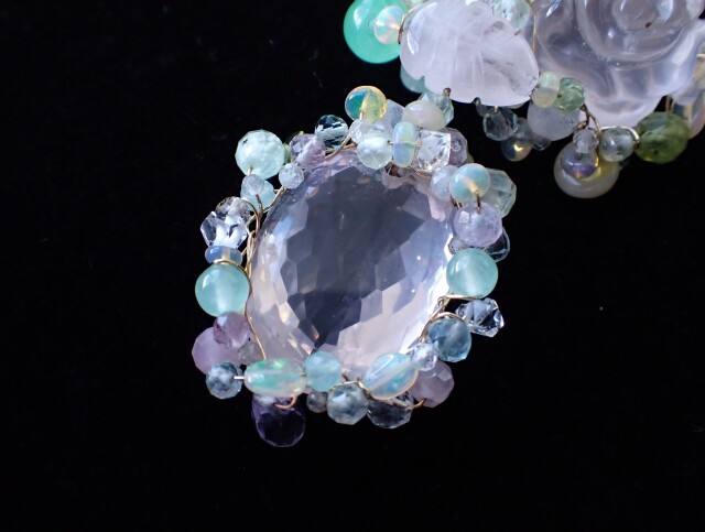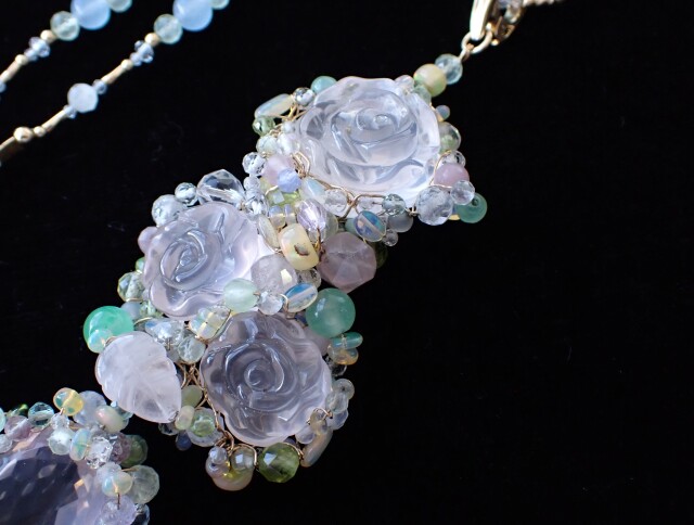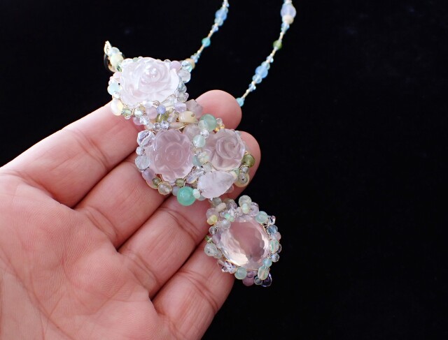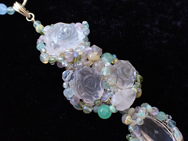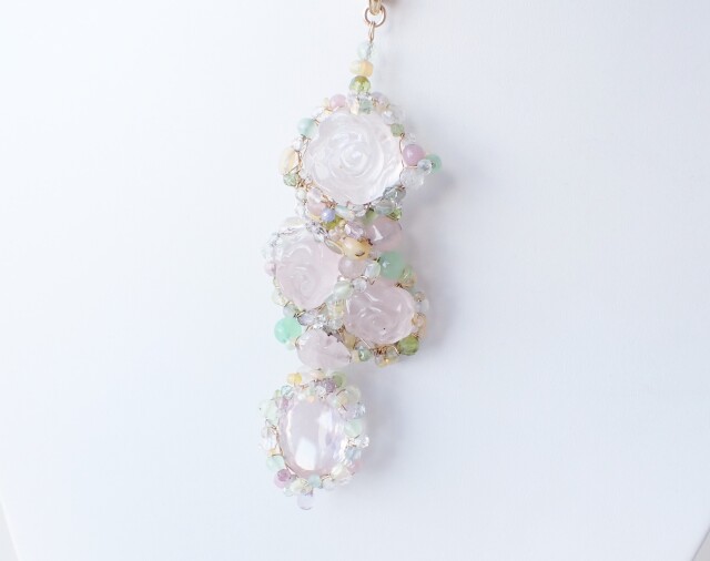RB0354 ローズクォーツ/ローズシェイプ ペンダントネックレス