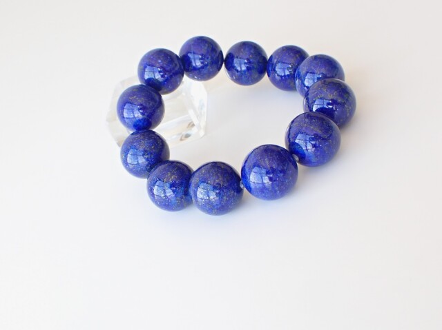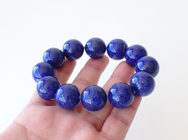 産地:アフガニスタン ラピスラズリ 約20mm×12粒 腕回り:約18.5cm(保護用シリコン付き)