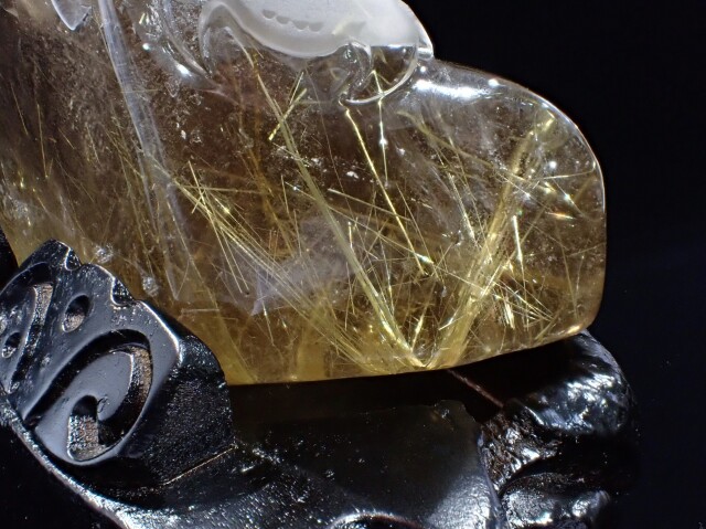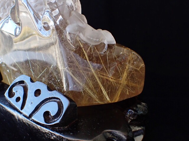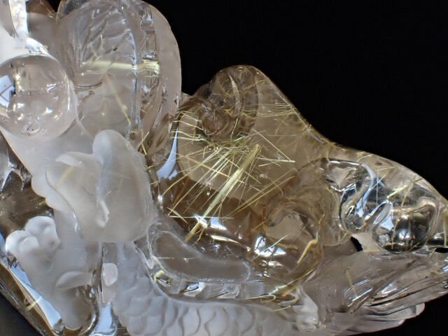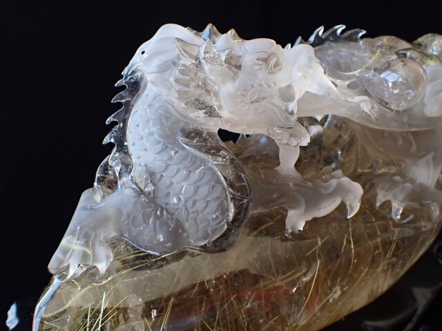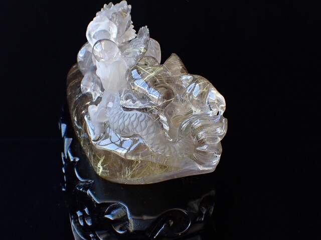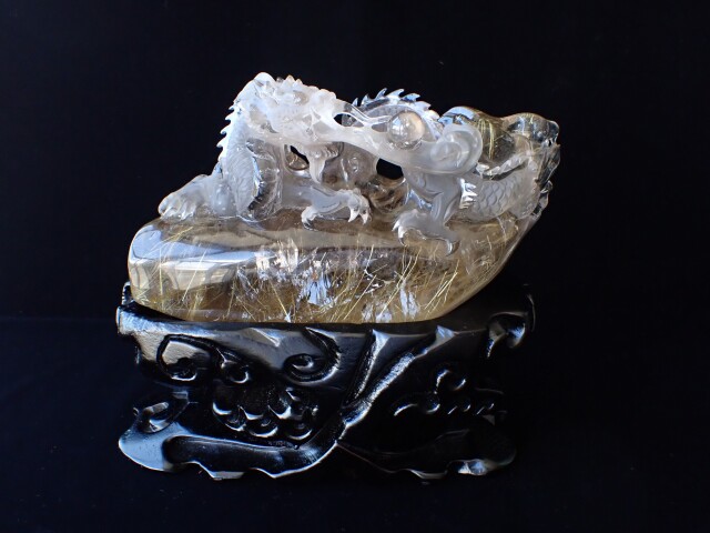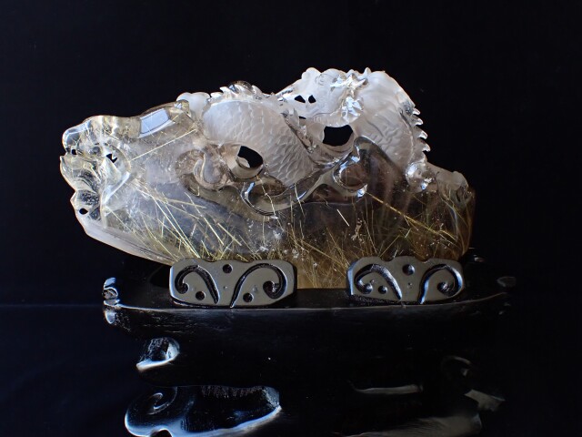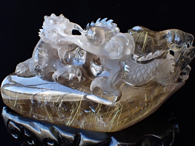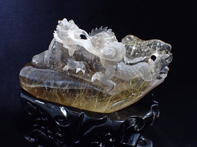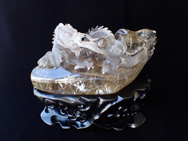 RE0646 【プレミアム】 ルチルクォーツ/龍 ☆木製台座付き☆