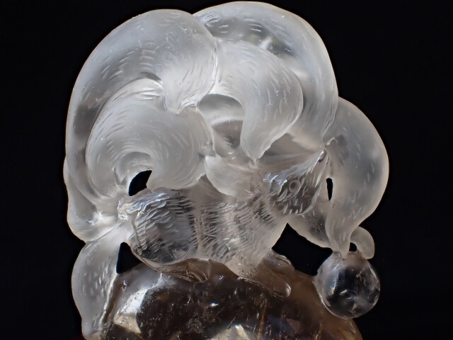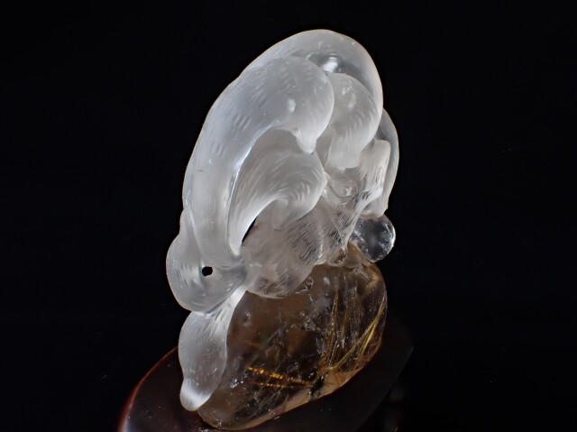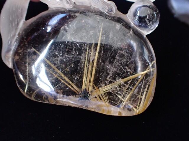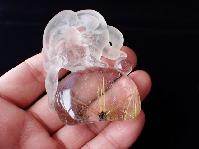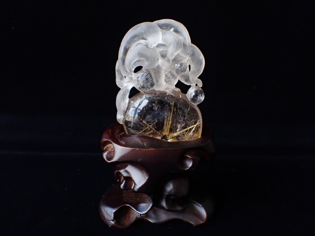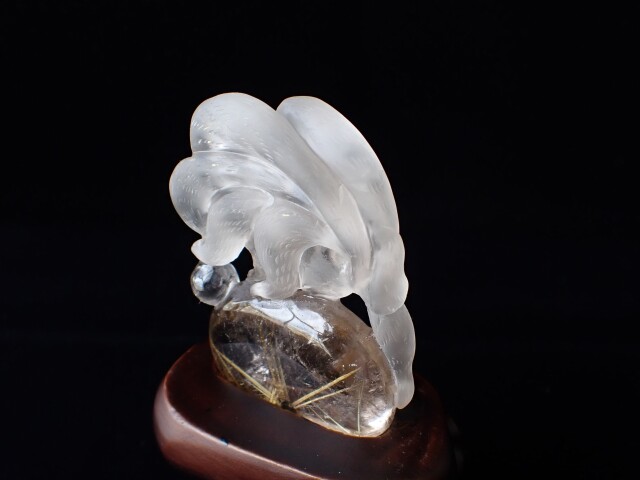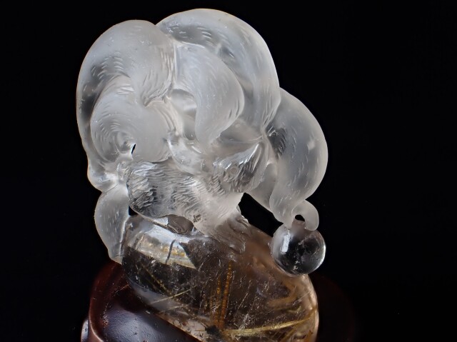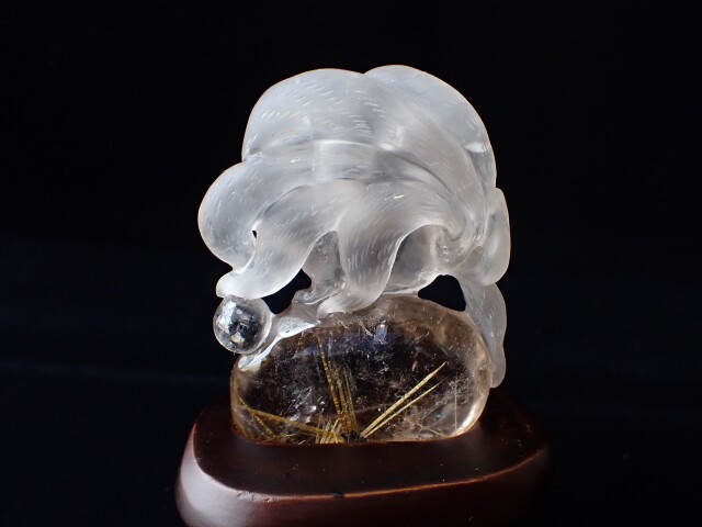 RE0654 九尾の狐/太陽タイチンルチルクォーツ 70g ☆木製台座/専用箱付き☆