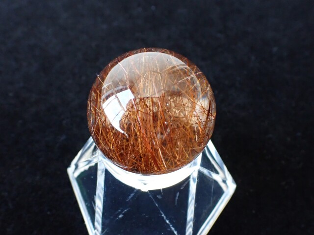 RE0773 マニハール産 ルチルクォーツ スフィア(丸玉) 直径:27mm ☆台座付き☆