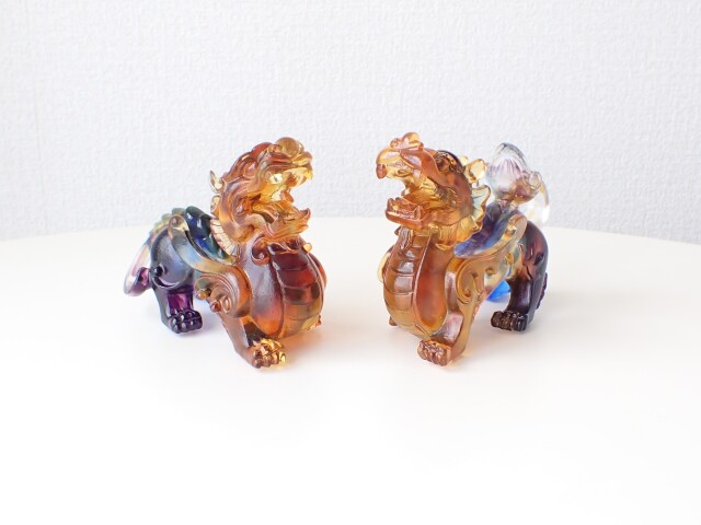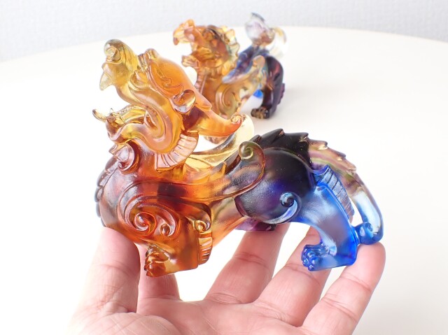 瑠璃ガラス ヒキュウ(貔貅) ペア 【大サイズ】