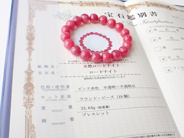 インペリアルロードナイト 約9.5mm~10mm×19粒 腕回り:約15cm 宝石鑑別書付き