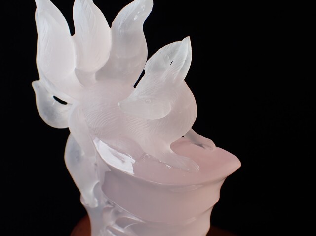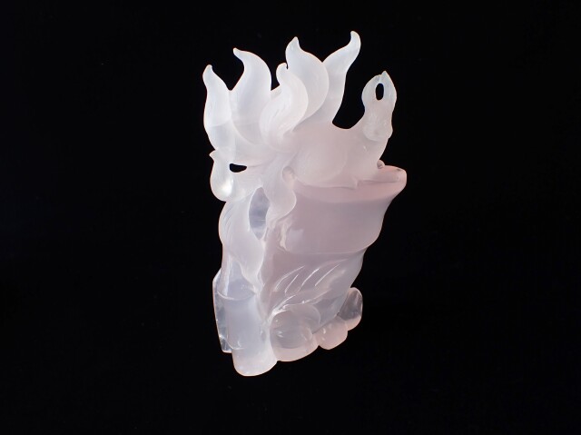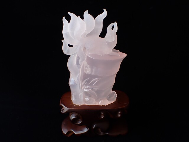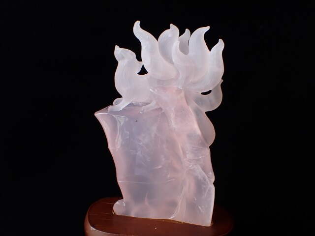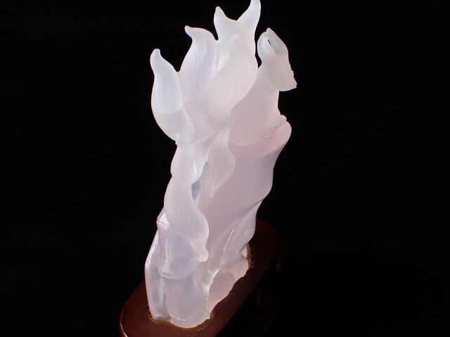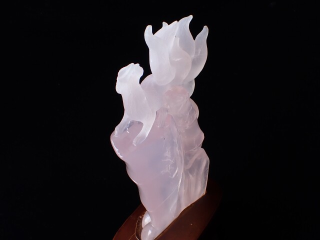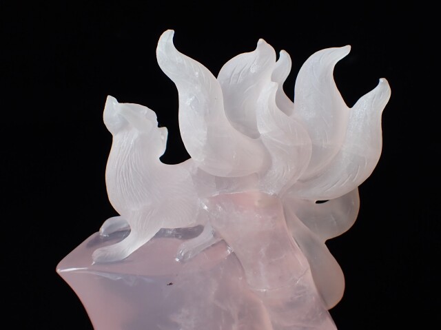 RM0123 九尾の狐/ローズクォーツ 637g ☆木製台座/専用箱付き☆