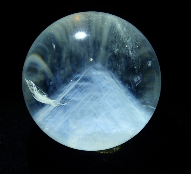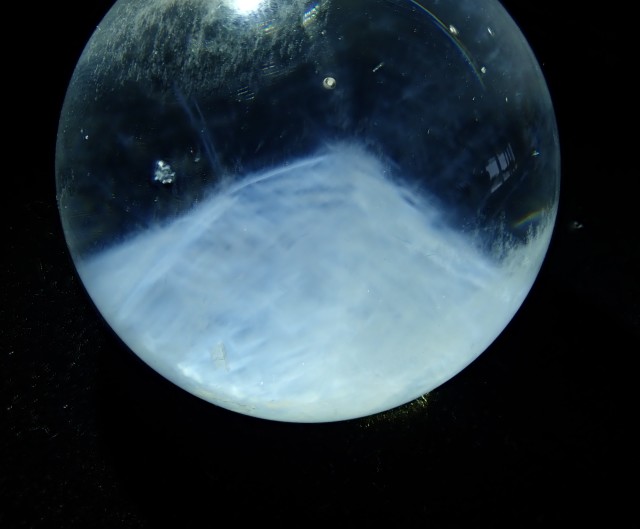 光の角度や加減によりクォーツ内に青白い線状の部分やふんわりした靄のような部分などが見えます。LEDペンライト等で見てみると比較的確認しやすいです。 ムーンクォーツにも雰囲気が似ていますが、クォーツ内の神秘的な様相が特徴のクォーツになります。