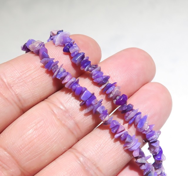 産地:南アフリカ共和国 ラベンダーピンク スギライト さざれチップ 連(約90cm)