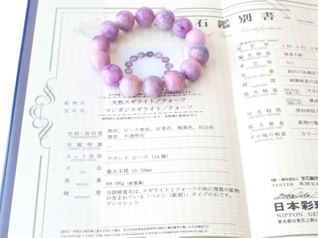 SB0852 【プレミアム】 ピンクスギライト 15mm~15.5mm ブレスレット ☆宝石鑑別書付き☆