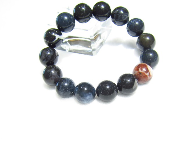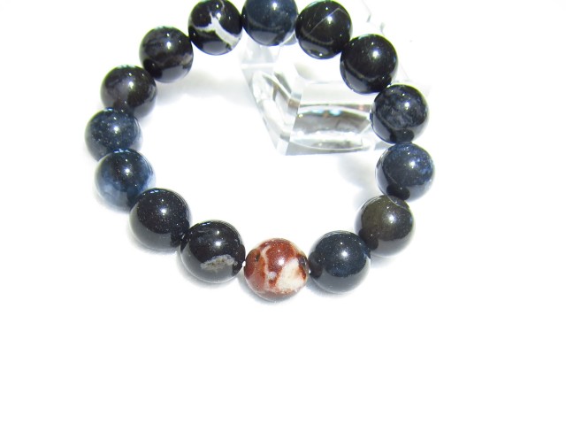 産地:インド ラジャスタン州 ジャイプール産 スレイマンアゲート 約14mm×15粒 腕回り:約16.5cm