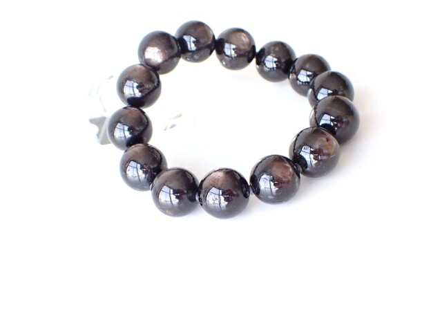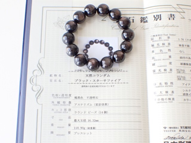 SZ0006 【プレミアム】 ブラックスターサファイア 15.5mm~16.3mm ブレスレット ☆宝石鑑別書付き☆